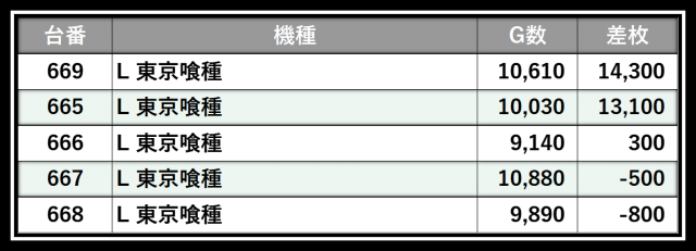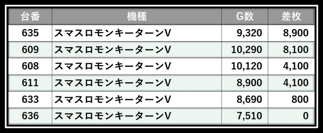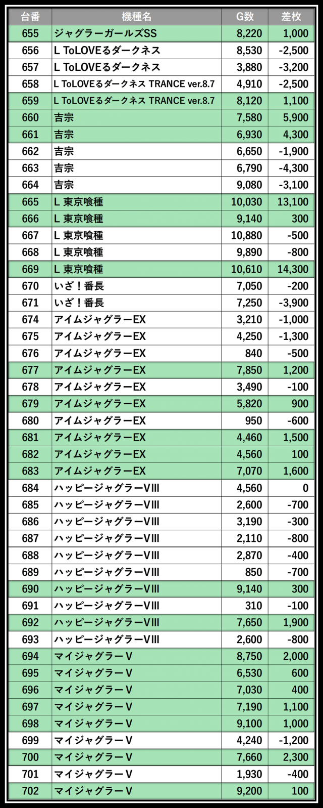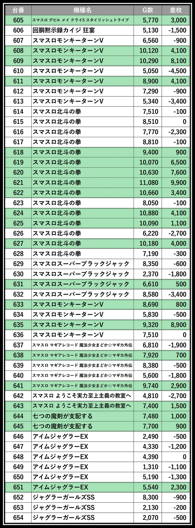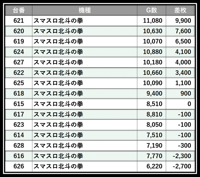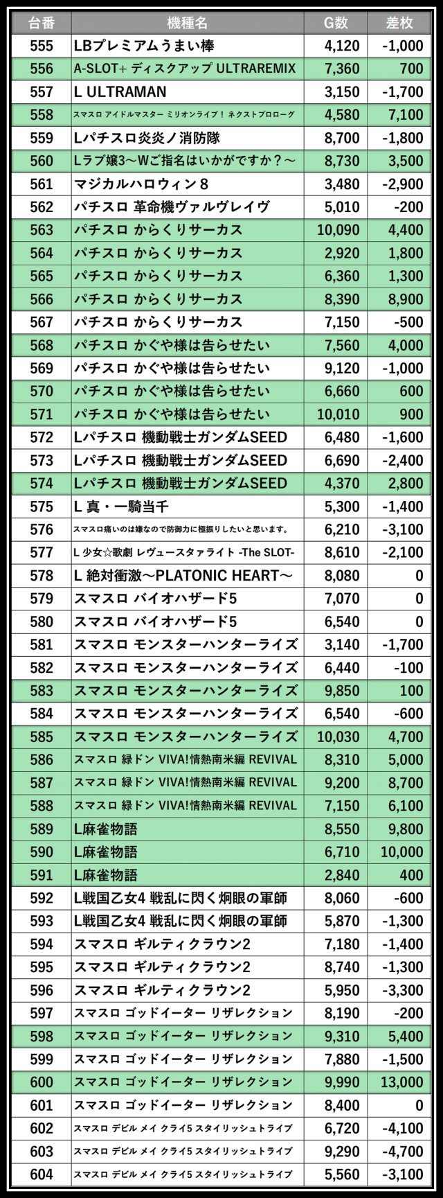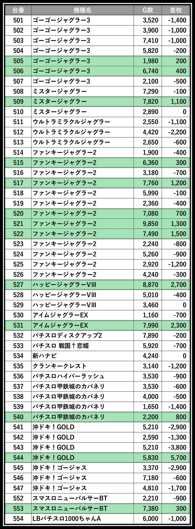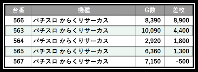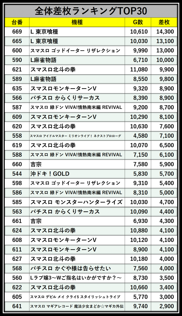 ※差枚数順に掲載しています
