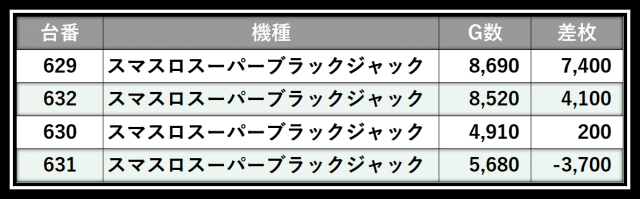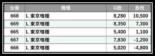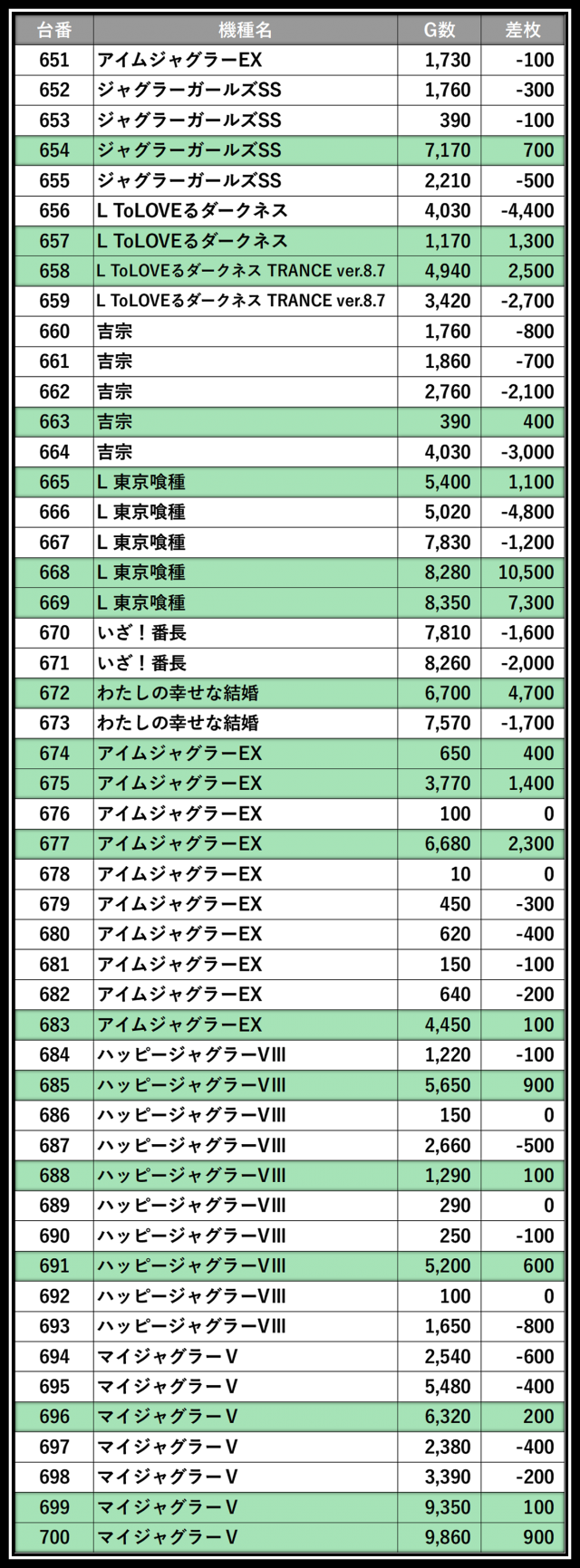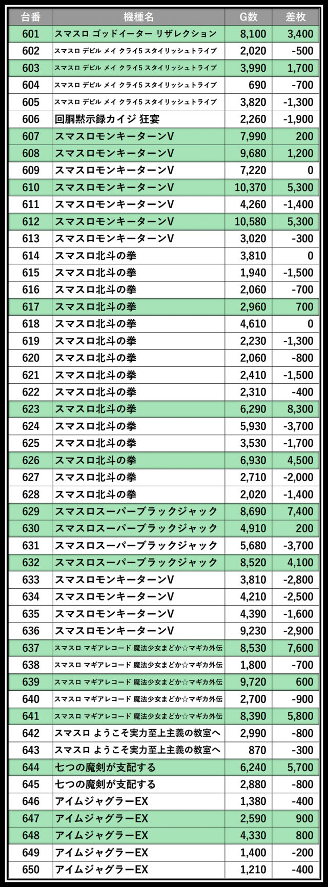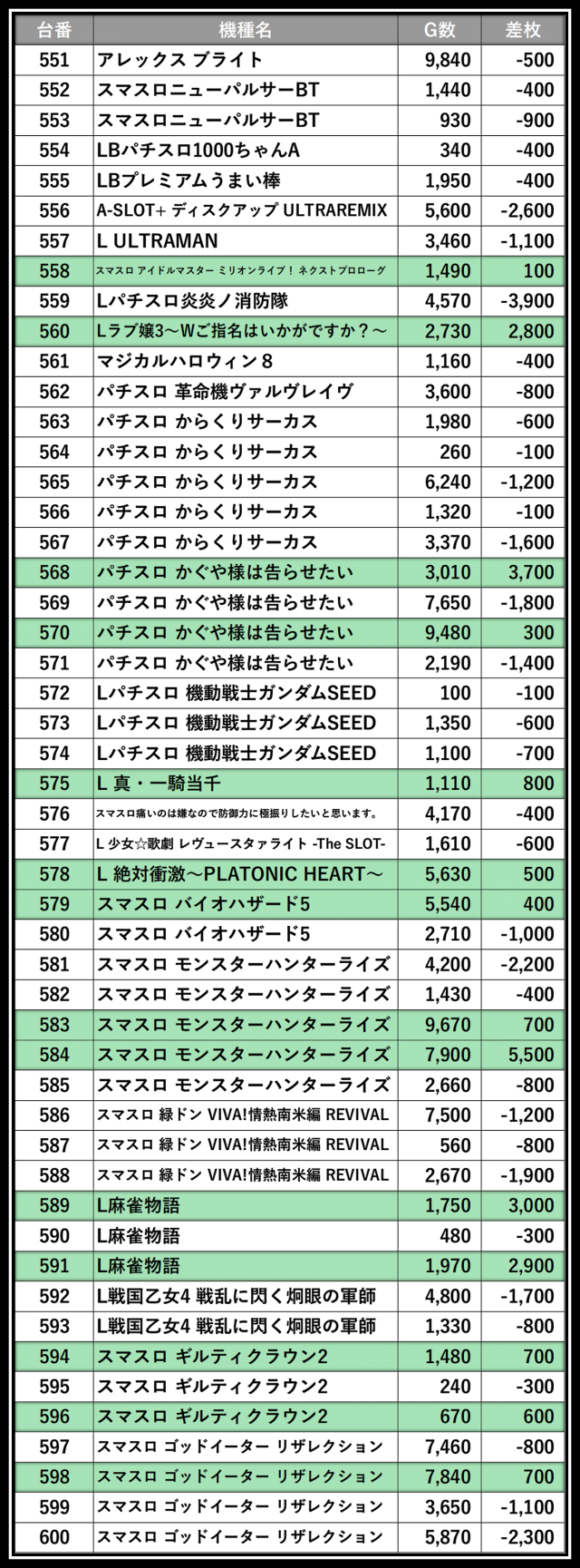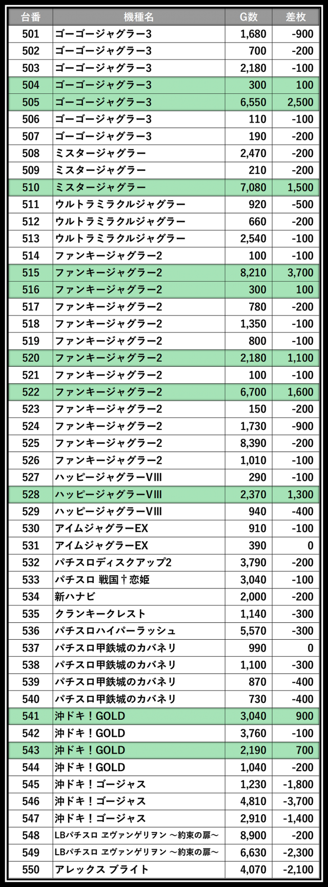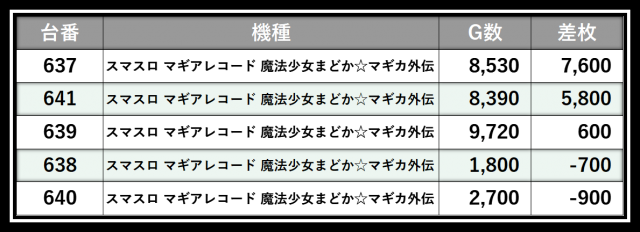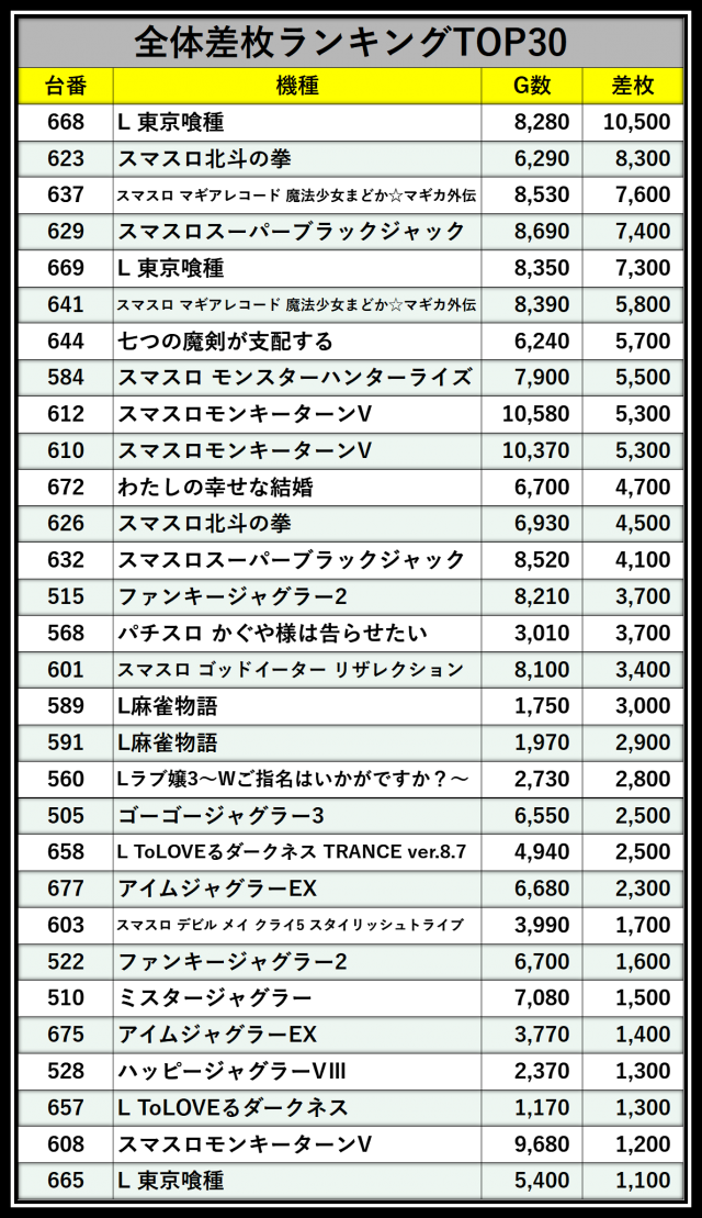 ※差枚数順に掲載しています