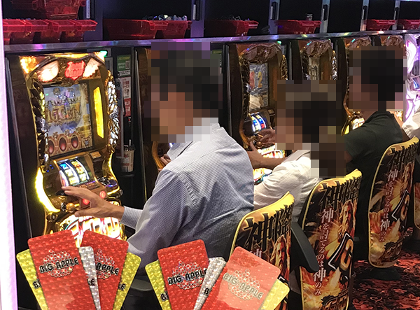 「ミリオンゴッド-神々の凱旋-」を中心に多くの機種が楽しまれており、ホール全体に輝くような笑顔が広がっていた。
