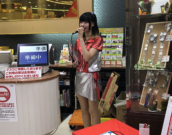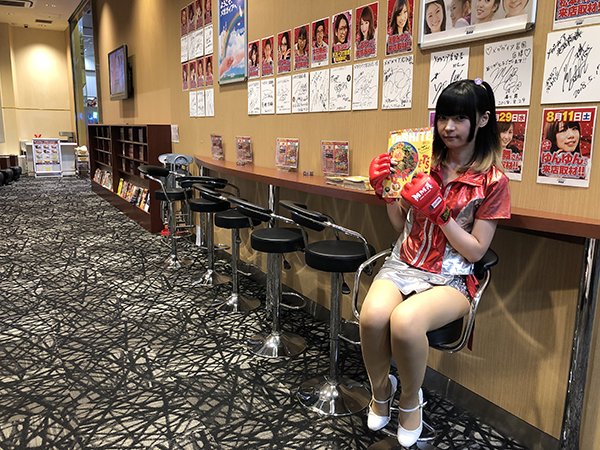 魅力的なグラフをみつけてくれたかのんちゃんは、レストスペースでひと休み♪ DMMぱちタウンが手がける「TaSHITE」があるので、みつけた際には手にとってみてくださーい(/^3^)/