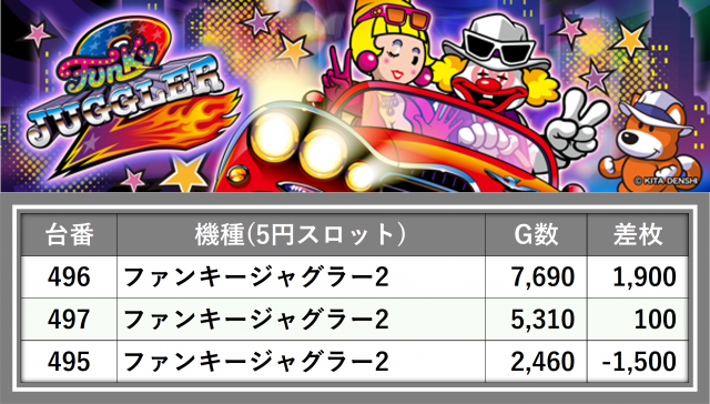 厳選された取材対象機種をはじめ、その他スロット全体から好記録が飛び出した!プレイヤーが楽しんだ1日を下記データにて振り返ってみて欲しい。