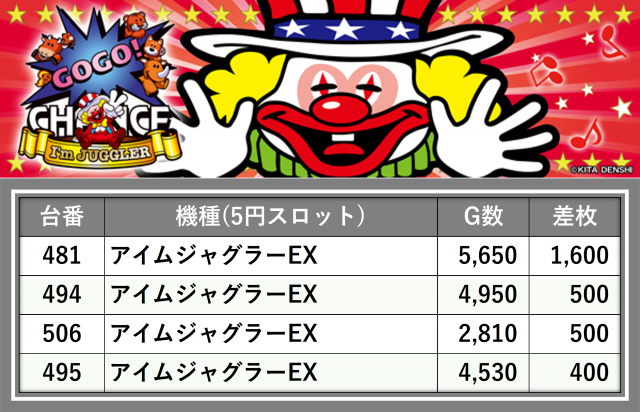 厳選された取材対象機種をはじめ、その他スロット全体から好記録が飛び出した!プレイヤーが楽しんだ1日を下記データにて振り返ってみて欲しい。
