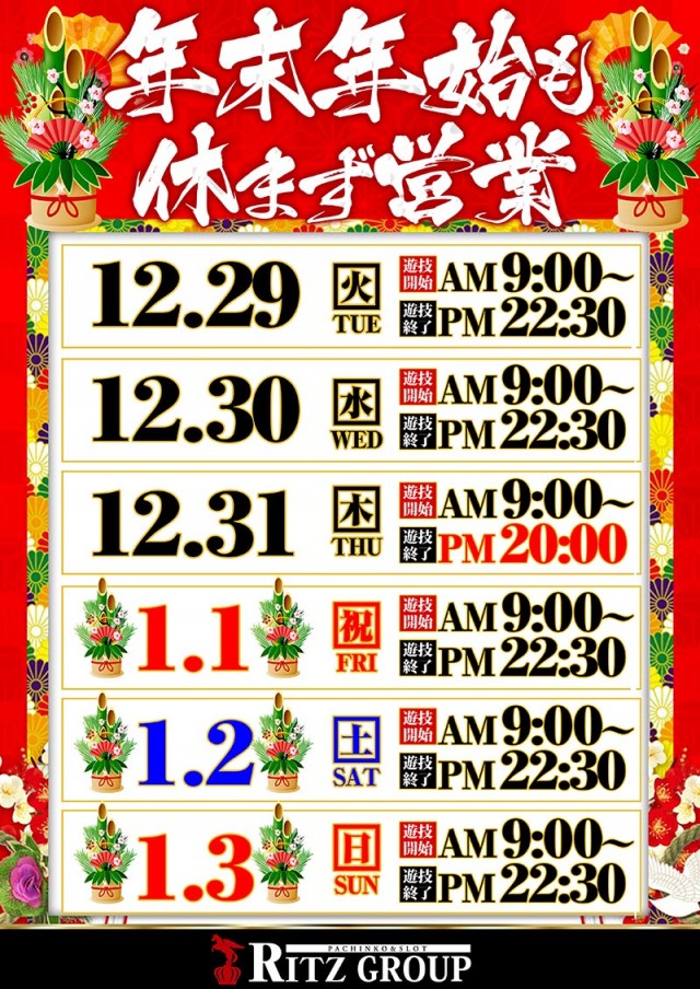 三ヶ日のラストはぜひリッツへ!--------------------------