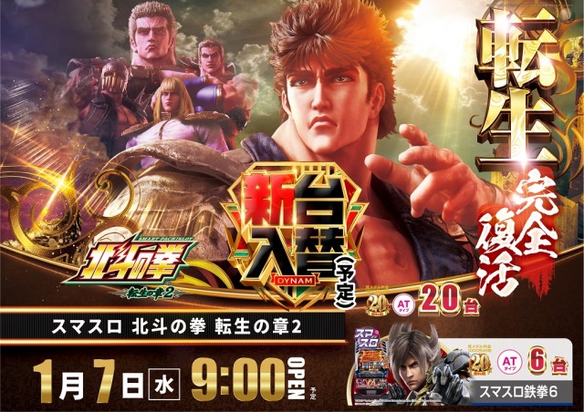 1/7(水)新台入替予定 L北斗転生2他、全8機種34台導入