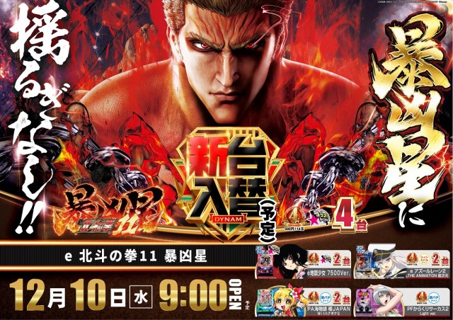 本日12/9(火)店休日、明日12/10(水)新台入替予定