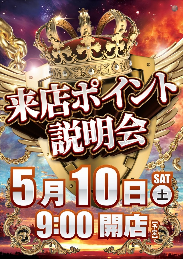 本日5/10(土)来店ポイント説明会9:00開店(予定)