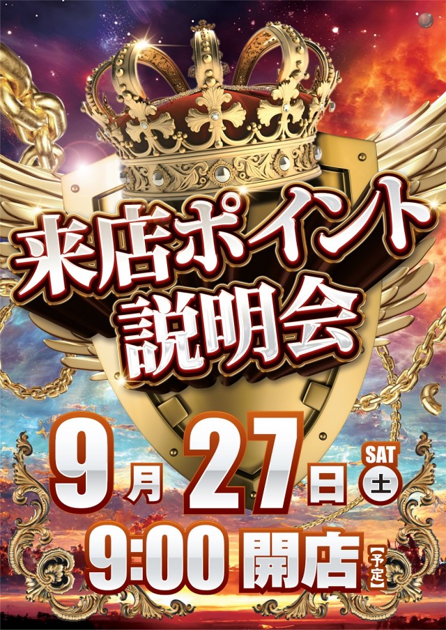 本日9/27(土)来店ポイント説明会9:00開店(予定)
