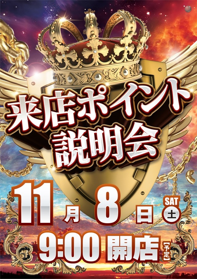 本日11/8(土)来店ポイント説明会9:00開店(予定)
