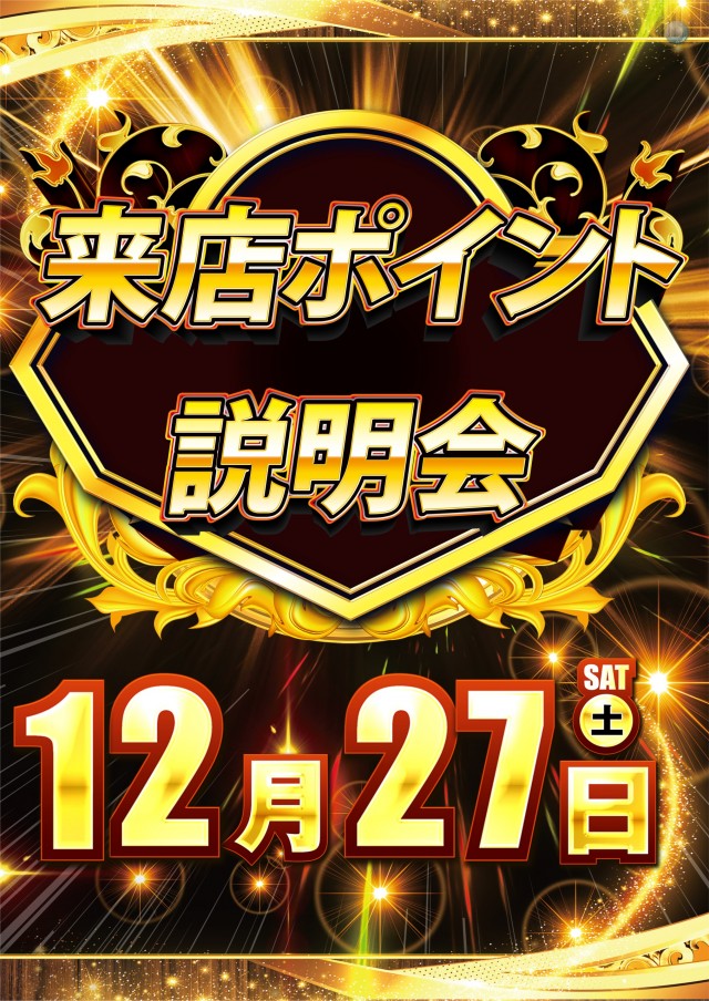 本日12/27(土)来店ポイント説明会9:00開店(予定)