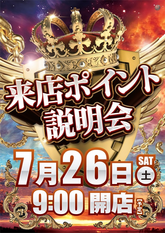 本日7/26(土)来店ポイント説明会9:00開店(予定)