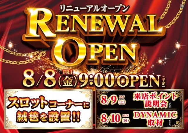 8/6&7店休日、8/8(金)リニューアルオープン(予定)