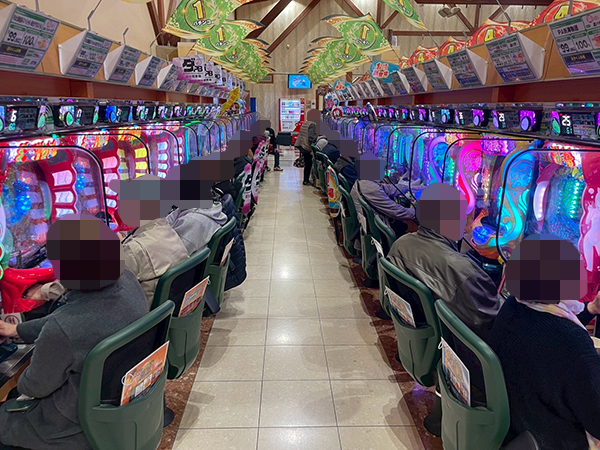 店内では貸し玉料金を問わず様々な機種で、心ゆくまで楽しむプレイヤーの姿が見られた。