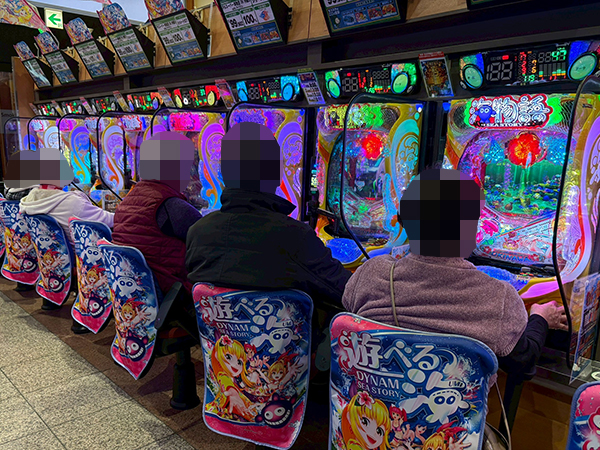 取材時は貸し玉料金を問わずプレイヤーでにぎわっており、各シマとも明るい雰囲気に包まれていた。