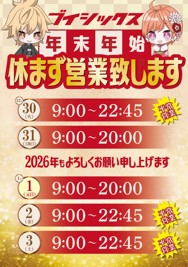 12/30【火】★年末はV6で勝負★一斉9時スタート★