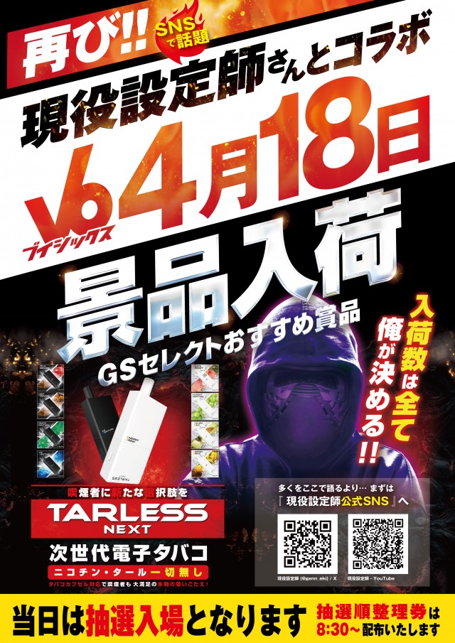 4/21【火】★本日一斉9時オープン★いくぜV6!