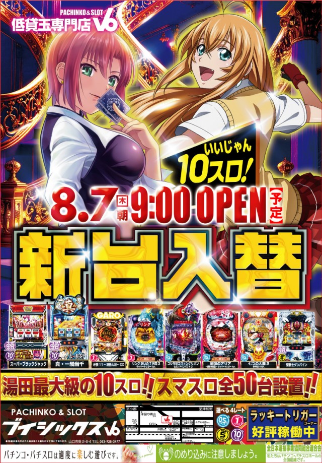 8/15【金】お盆休み終盤もV6へ★GOGO★一斉9時開店