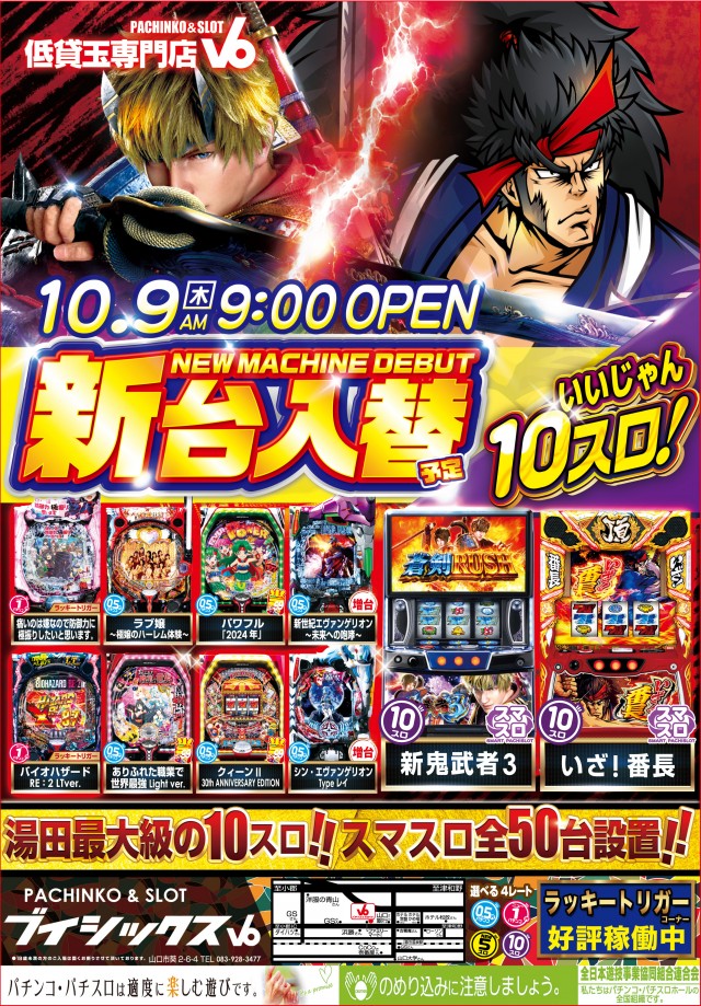 10/2【木】10月V6秋の陣★休まず営業一斉9時オープン★