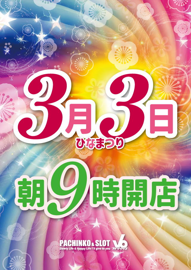 3/3【日】ひなまつりはV6へお越し下さい★ 一斉9時開店