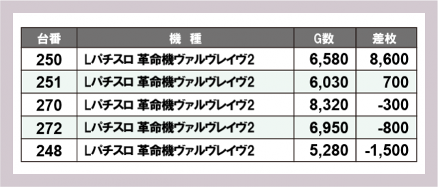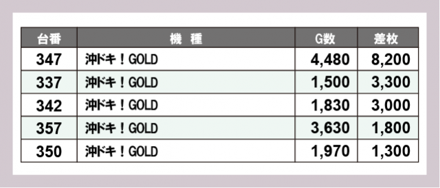※差枚数順に掲載しています