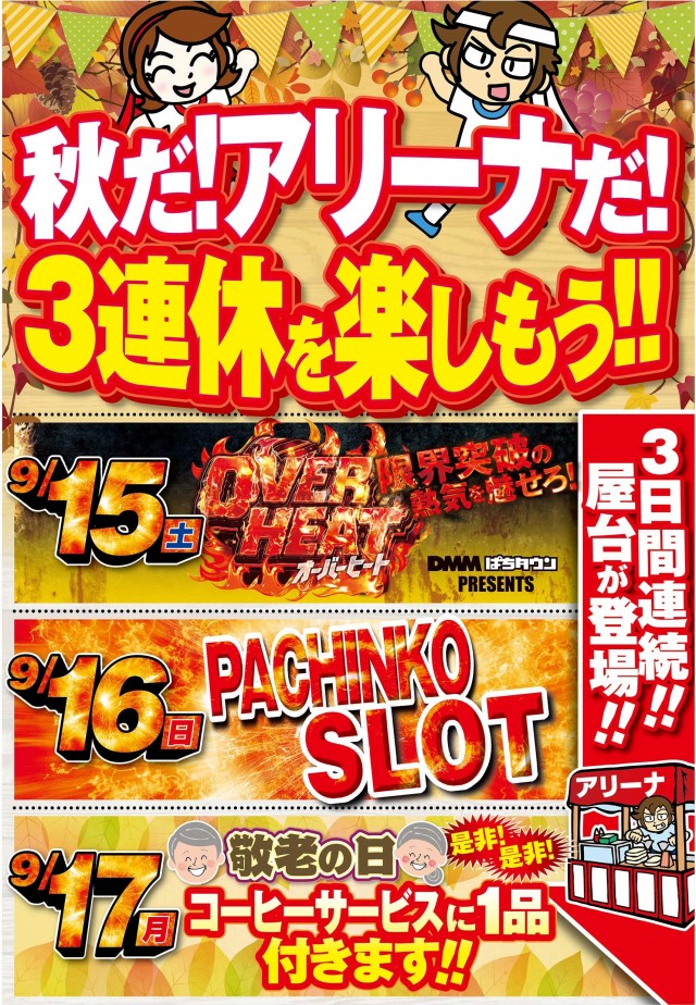 明日16日☆アリーナPACHINKO&SLOT 朝9時開店☆