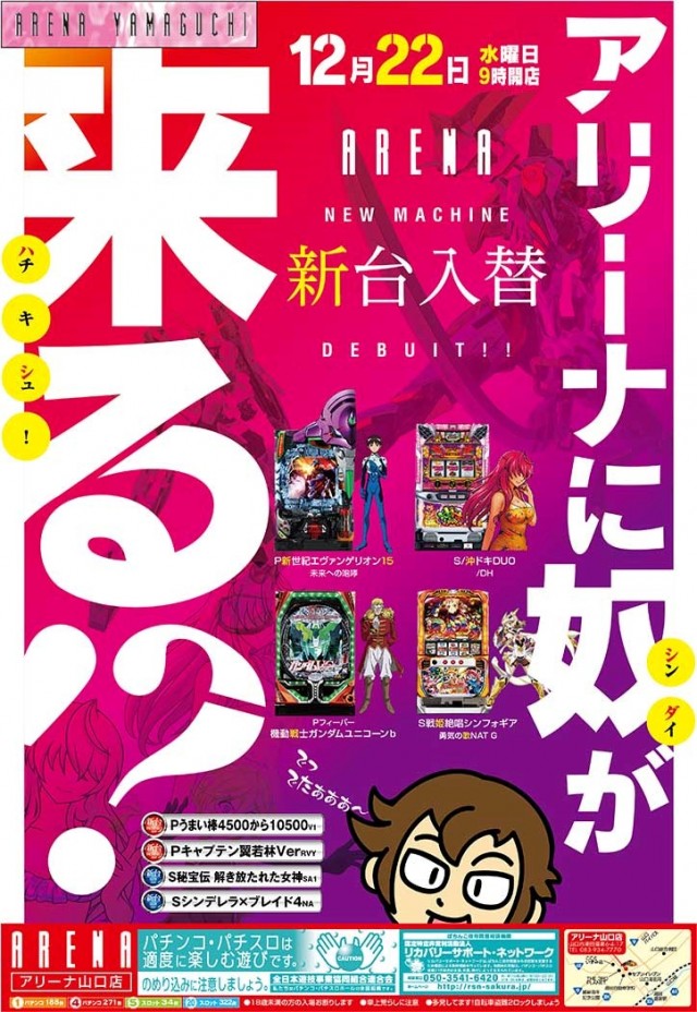 本日店休日☆明日20日 アリーナ 新台入替 朝9時開店☆