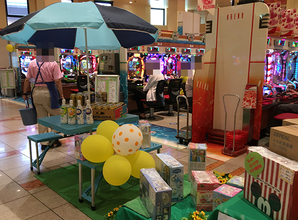また、品揃えが豊富な賞品コーナーも魅力的。ヒマワリやパラソルを使い、夏らしさを演出していたことにも好感を抱いた。
