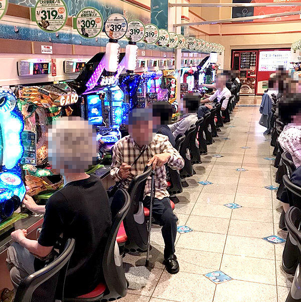 15時前の4円パチンココーナーをチェックすると、「ぱちんこCR真・北斗無双」や「CR ミリオンゴッド ディセント」が高稼働。好調な遊技をおこなっているプレイヤーの姿からは、充実した時間を過ごせていることが伝わってきた。