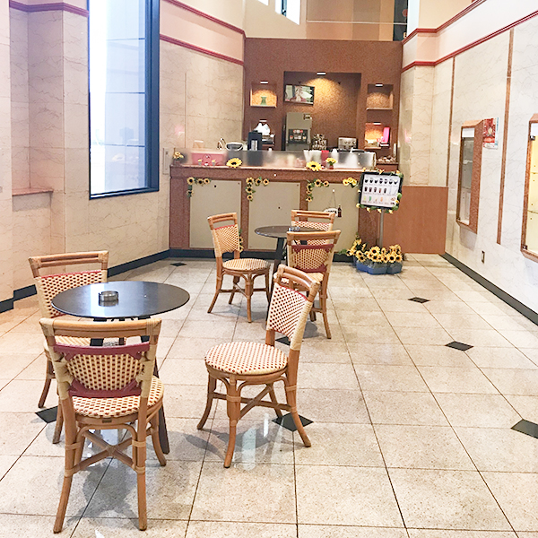 ドリンクメニューが充実したカフェは全体的に落ち着いた雰囲気。休憩時にはゆったりとしたひと時を過ごすことができる。