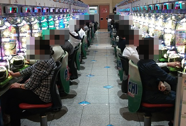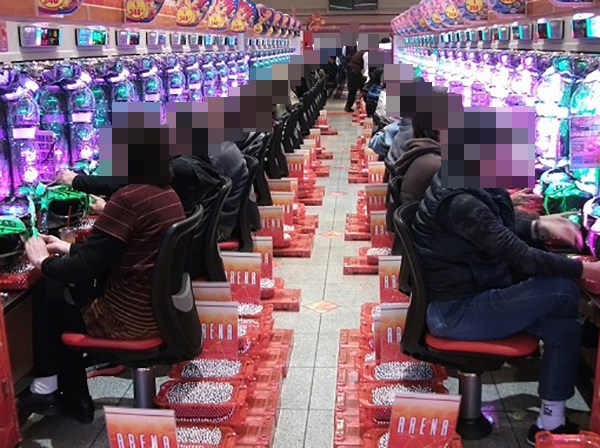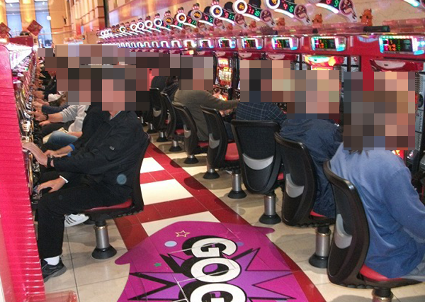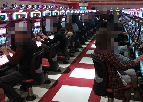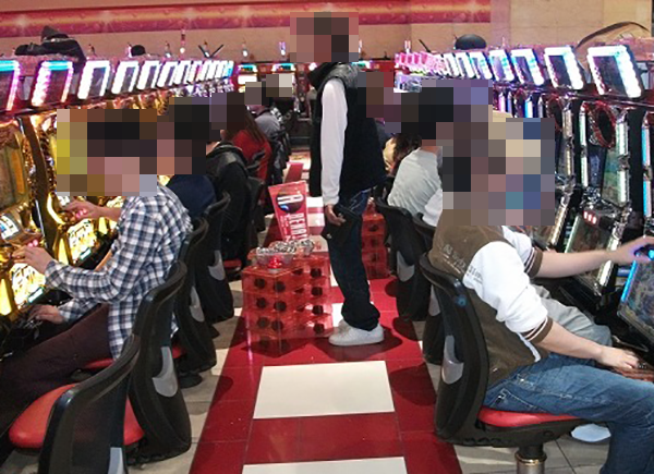 15時頃の4円パチンコでは、海物語シリーズが圧倒的な人気を誇っており、どの機種もほぼ満席と大きく盛り上がっていた。