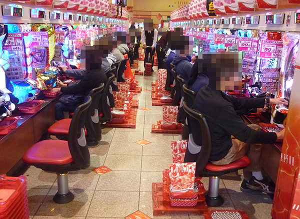 1円パチンコも大勢のプレイヤーが遊技をおこなっており、なかでも海物語シリーズは、ほとんど空き台が見当たらないほどの人気ぶりであった。