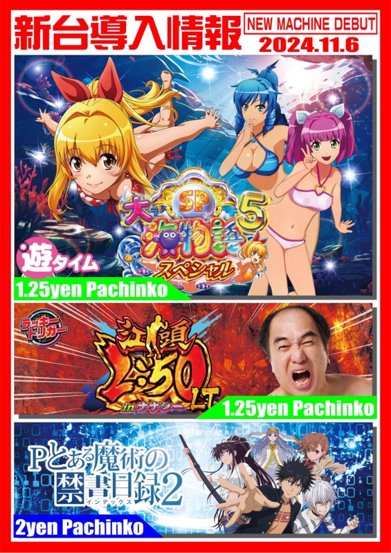 永楽 11/6(水) 新台入替!!朝9時OPEN