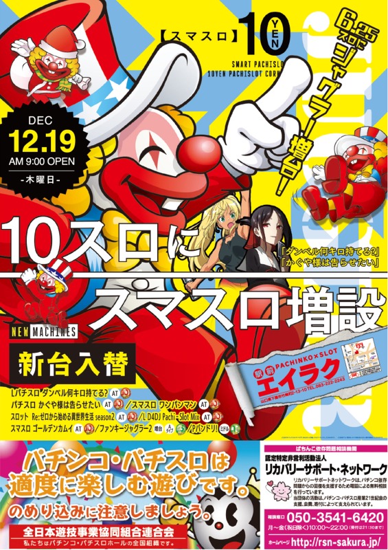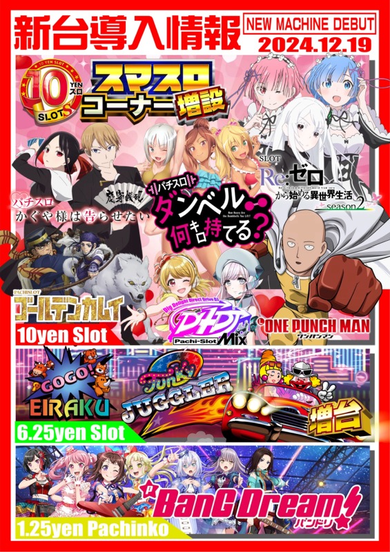 永楽 12/19(木)新台入替!! スマスロ大幅増台!!