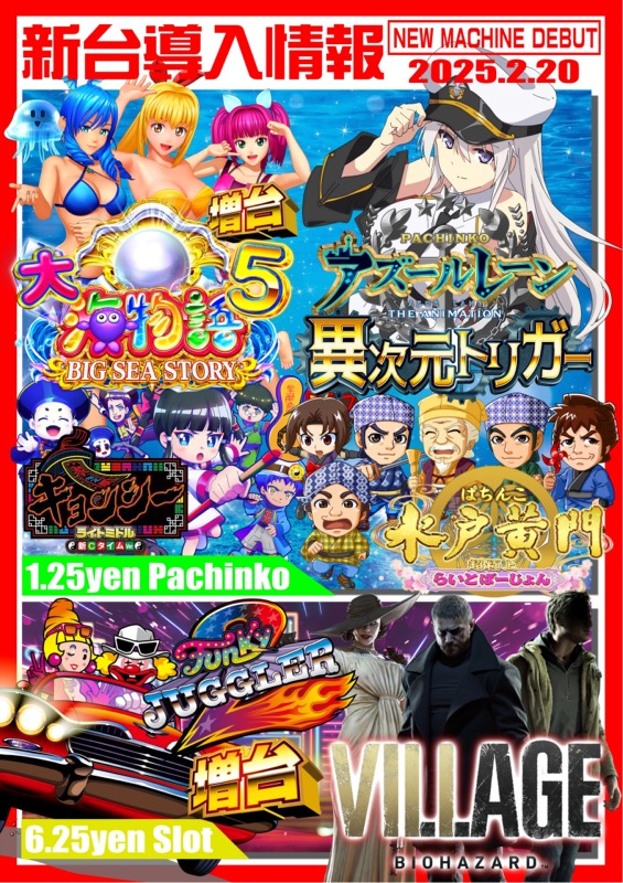 永楽 2/20(木) 新台入替!!朝9時OPEN