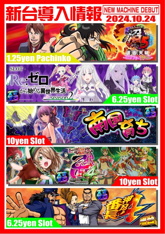 永楽 10/24(木) 新台入替!!朝9時OPEN