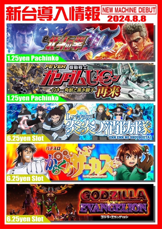 永楽 8/8 (木) 新台入替!!朝9時OPEN
