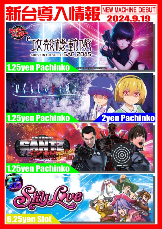 永楽 9/19 (木) 新台入替!!朝9時OPEN