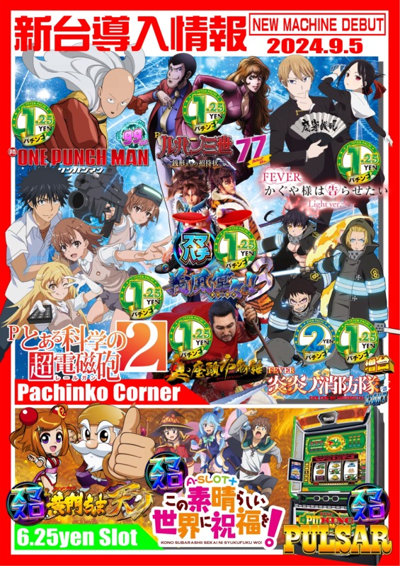 永楽 9/5 (木) 新台入替!!朝9時OPEN