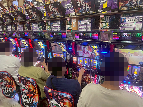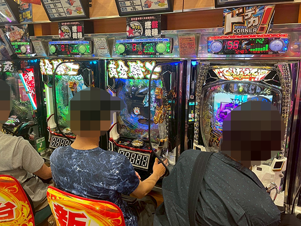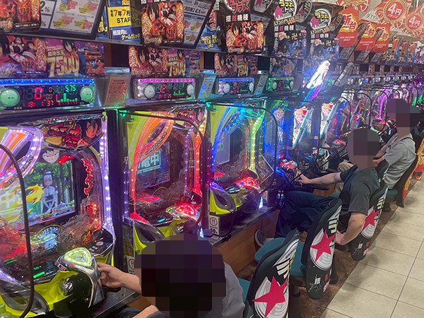 14時ごろの4円パチンコでは「eフィーバー炎炎ノ消防隊2 紅丸ver.」や「e東京リベンジャーズ」、「eシャーマンキング でっけぇえなver.」が好評で、魅力的なシーンをシマの至る所で目にしている。