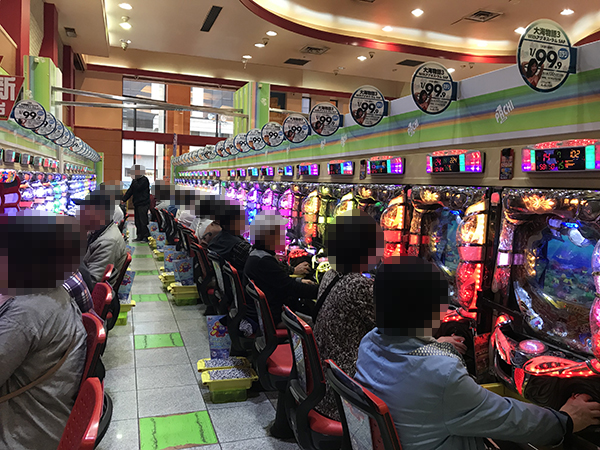 15時ごろの4円パチンココーナーを覗いてみると、新台の「CR大海物語4 Withアグネス・ラム 遊デジ119ver.」や「CR大海物語4」などの海物語シリーズで、機種の性能を最大限まで引き出しているプレイヤーを目撃。羨ましいと思えるほどの魅力的なシーンを確認している。