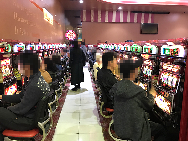 パチスロコーナーをチェックすると、「アイムジャグラーEX‐AE」や「ゴーゴージャグラー」などのボーナスタイプでプレイヤーの期待に応えている台が多く、フロア一帯に笑顔が広がっていた。