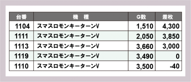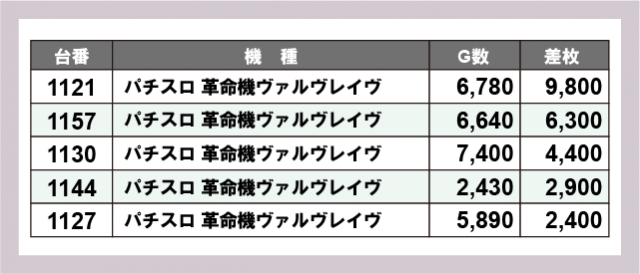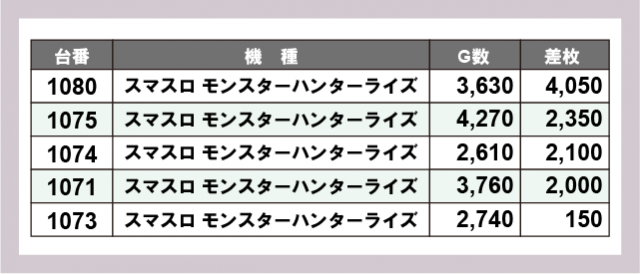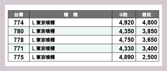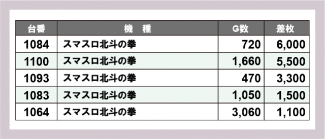 ※差枚数順に掲載しています