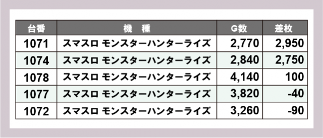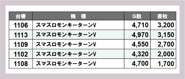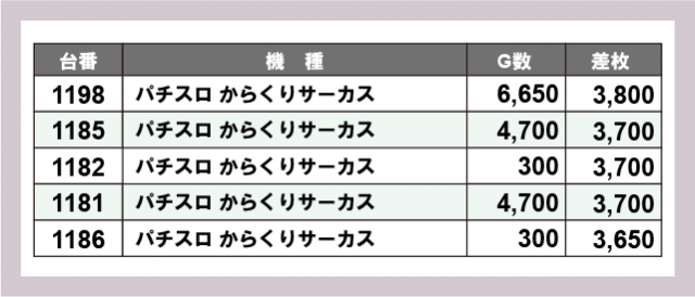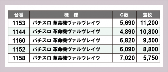 ※差枚数順に掲載しています