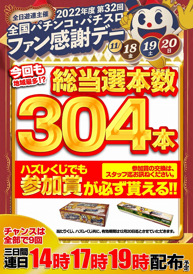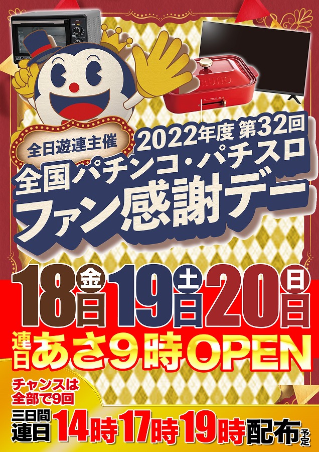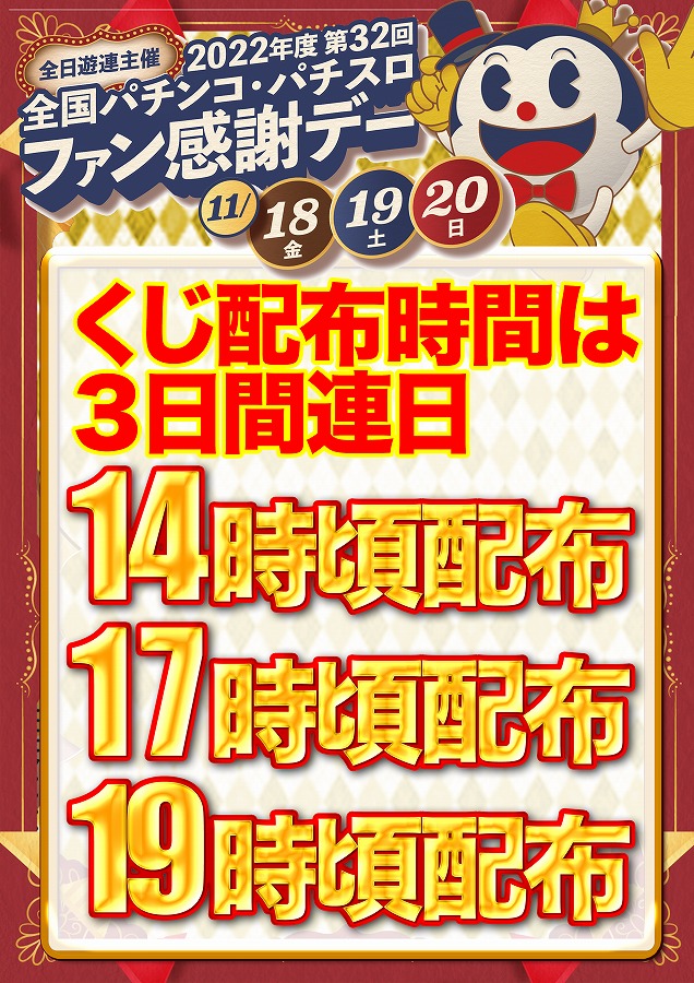 18日(金)ファン感謝デー!!連日14時17時19時配布!!