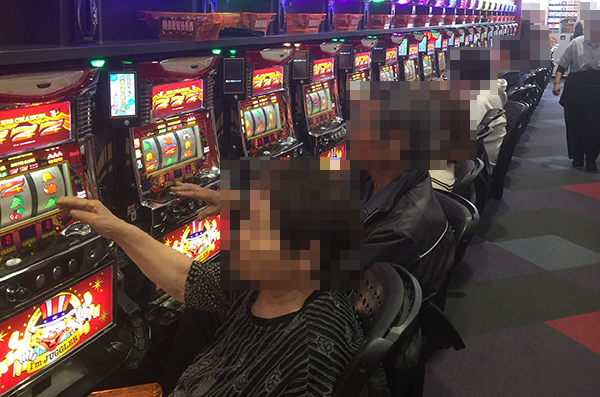 15時をまわった頃の4円パチンコでは、「CRスーパー海物語IN沖縄4」や「ぱちんこCR真・北斗無双」など、盛況となっている機種が多数。遊技を楽しむプレイヤーたちの明るい笑顔も印象に残っている。