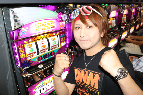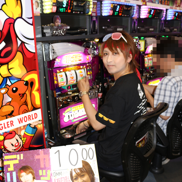 いつもの白衣ではなく、この日はDMMぱちタウンのTシャツを着用。
