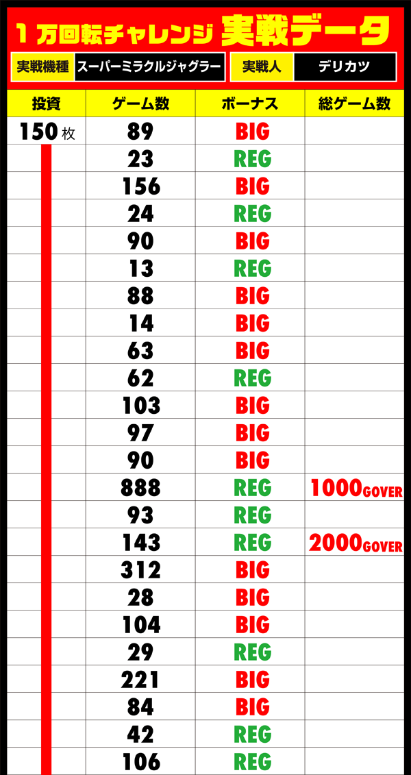 パートナーに選んだ「スーパーミラクルジャグラー」と一緒に進む1万回転の道は、前半から順調!
