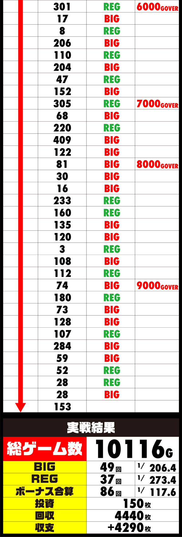 最終的な総回転数は10116Gと、8万回転チャレンジにおいても大きなアドバンテージを作ったところもさすが!