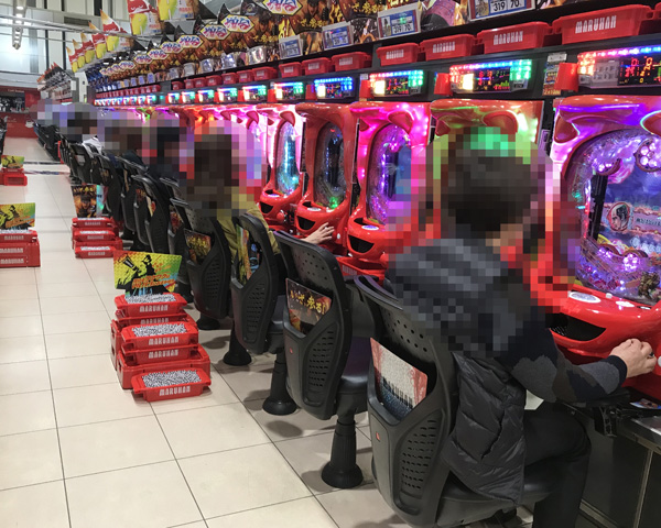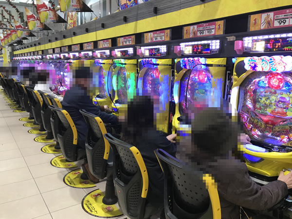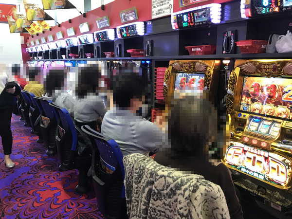 取材に訪れたときの店内は大勢のプレイヤーでにぎわっており、パチンコ・パチスロの各シマには笑顔が広がっていた。