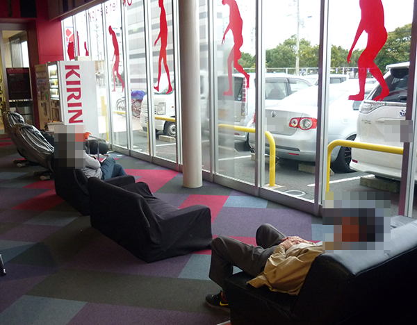 ホール内にはマッサージチェアやメニュー豊富なカフェが設置されており、ほっとひと息つけるようなサービスが多数あった。