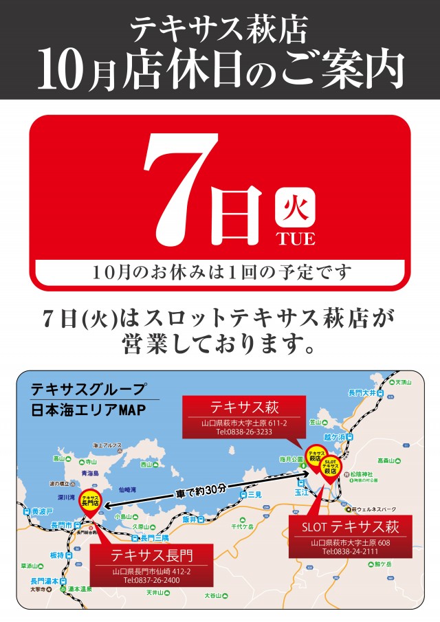 TEXAS萩店全館9時開店!ご来店お待ちしております!